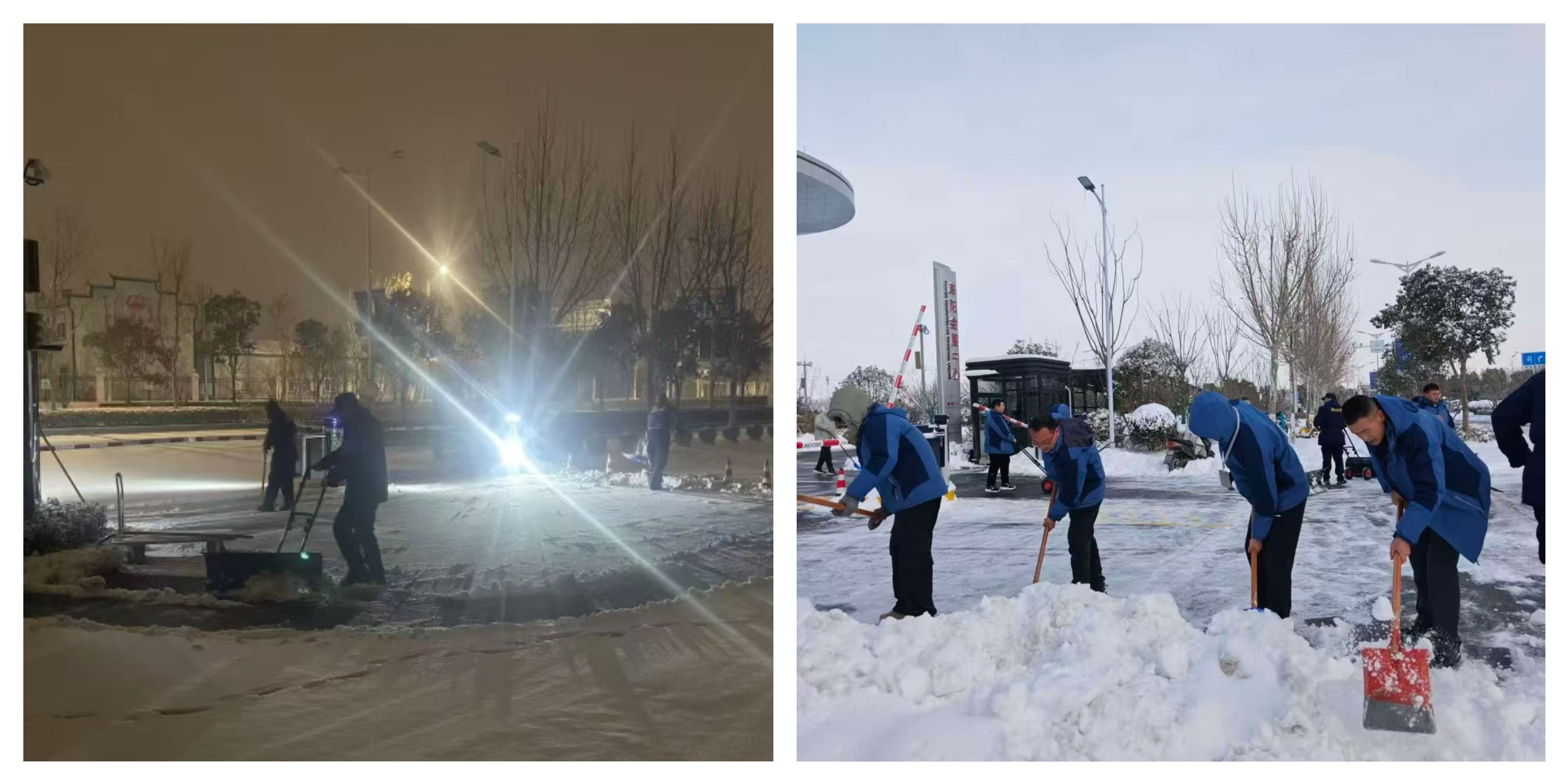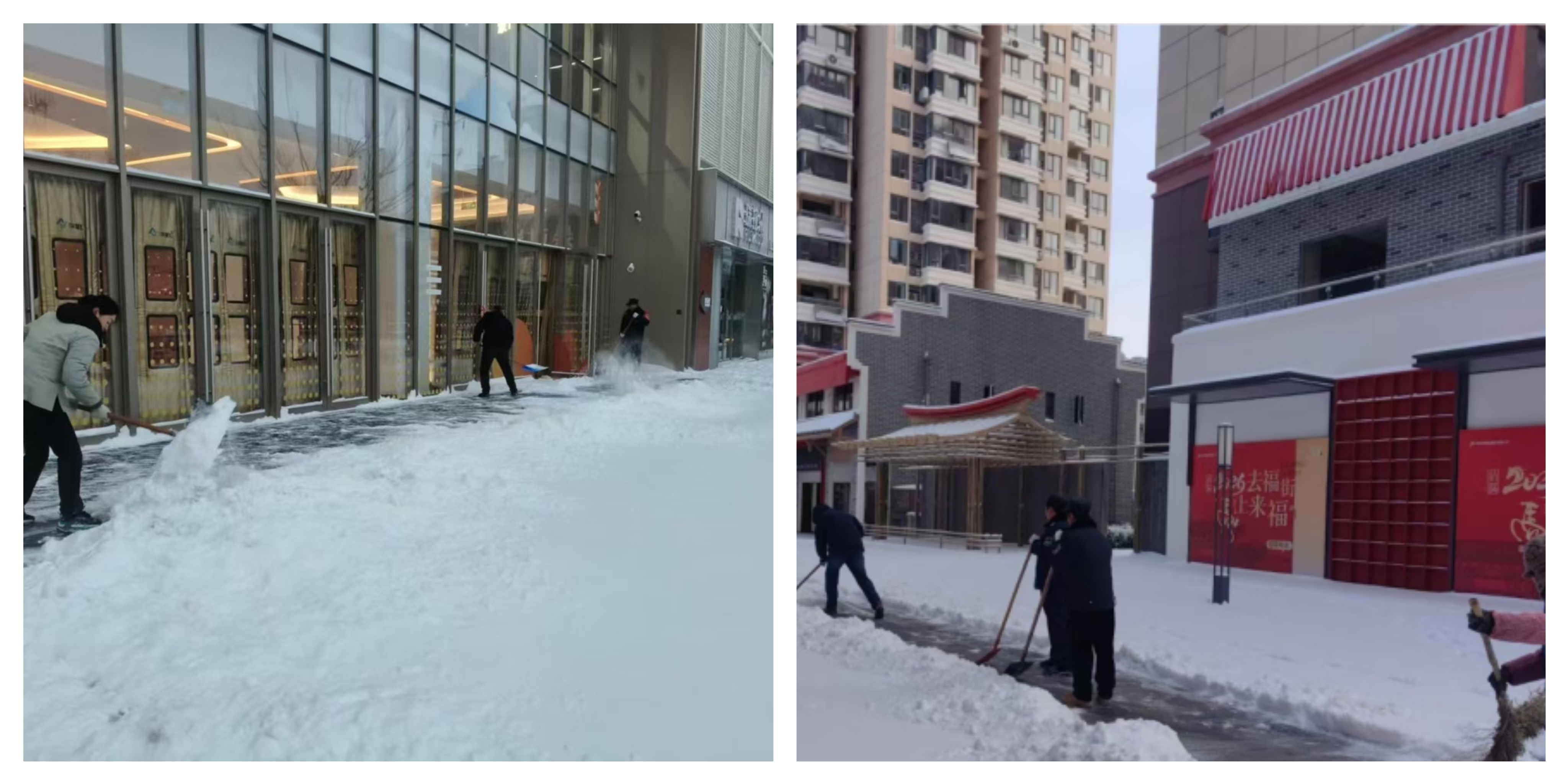 1月19晚降雪逐漸增大,各項(xiàng)目、鄰里匯商業(yè)、售樓部、會(huì)展中心分別組織專人在主干道、通道出入口清理積雪,潑灑工業(yè)鹽、融雪劑,對(duì)設(shè)備設(shè)施進(jìn)行檢查,并設(shè)置24小時(shí)值班電話,應(yīng)對(duì)突發(fā)情況。