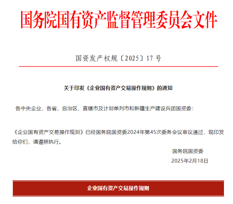 (轉載)國務院國資委印發《企業國有資產交易操作規則》